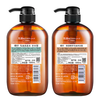 蝶印 日本进口 马油洗沐套装(补水洗发水600ml+沐浴露600ml)礼盒装