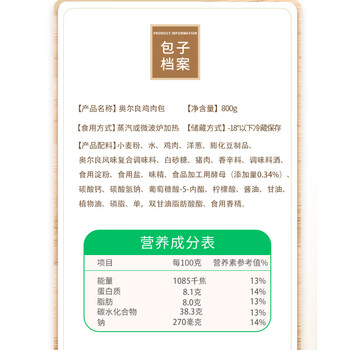 白象奥尔良鸡肉包800g 10个装 早餐包子馒头半成品 生鲜速冻速食面点