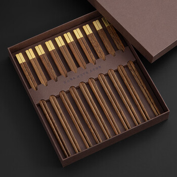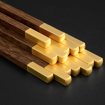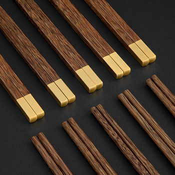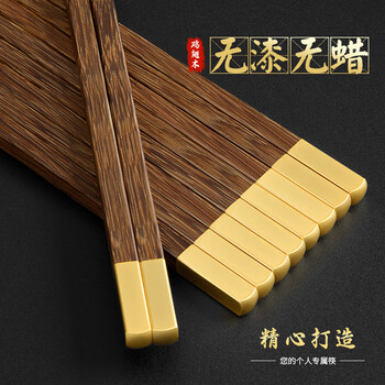 千年恋木鸡翅木中华筷接钼金铜头无漆无蜡家用筷子礼盒装 10双装 kz0385