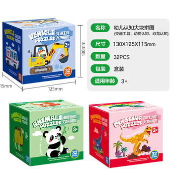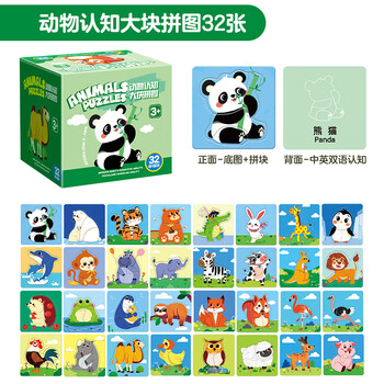 大眼小娃动物32张拼图1-3-6岁儿童平图早教益智玩具2岁男孩女孩生日礼物