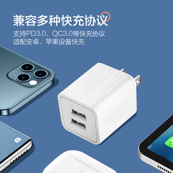 JPLAYER5V2.1A充电器插头多口USB快充适用苹果iPhone16/15/14华为小米荣耀OPPO安卓手表耳机电源适配器