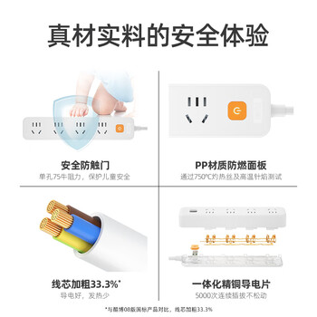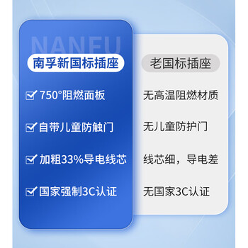 南孚3位插座 新国标 安全防触 阻燃面板 2500w大功率 插排/插线板/插座/排插/接线板/拖线板 NF318