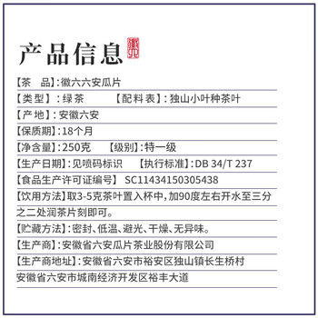 徽六 六安瓜片茶叶绿茶250g 雨前春茶手工特一级瓜片天青系列瓜片