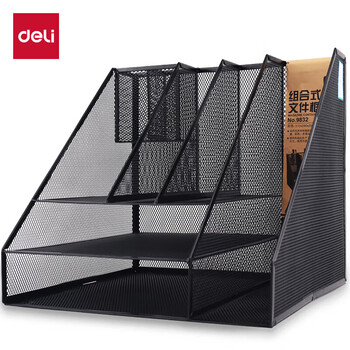 得力(deli)多功能金属网材组合式文件框栏 办公室桌面档案收纳盒多层资料置物架子 分层收纳 黑色9832