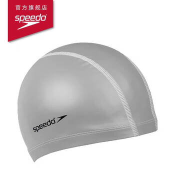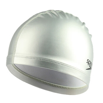 速比涛(Speedo)泳帽PU材质柔软舒适不勒头长发防水游泳帽 银色