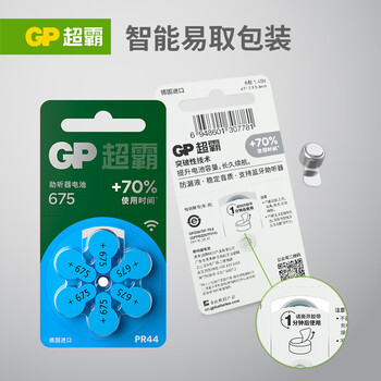 超霸(GP)助听器电池A675德国原装进口6粒装锌空气电池 适用峰力/西万博/西门子/瑞声达/奥迪康品牌