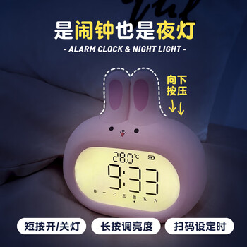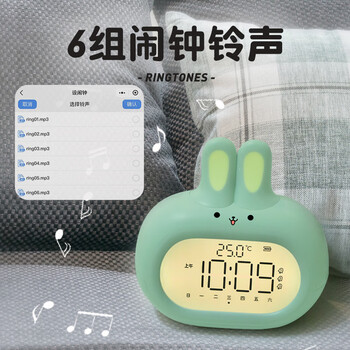 康巴丝(Compas)电子闹钟起床神器 儿童节日礼物卡通电子时钟萌兔闹钟 薄荷绿开学季