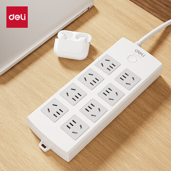 得力(deli)3C认证国标安全插座 插排/插线板/接线板/排插/拖线板 总控开关 儿童保护门 8组合孔3米 18211