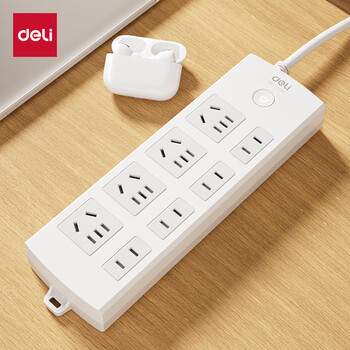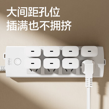 得力(deli)3C认证国标安全插座 插排/插线板/接线板/排插/拖线板 总控开关 儿童保护门 8位5米 白色 18214
