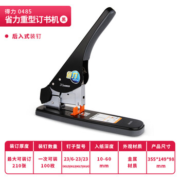 得力(deli)210页省力型重型大订书机/订书器 大号加厚重型订书机 适配23/6~23/23订书钉 带滑动标尺 黑色