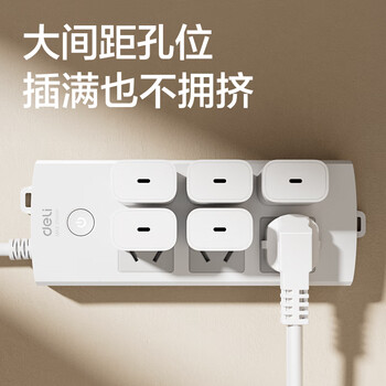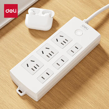 得力(deli)3C认证国标安全插座 插排/插线板/接线板/排插/拖线板 总控开关 儿童保护门 6位3米 18209