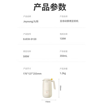 九阳豆浆机 350ml 迷你破壁豆浆机 一人食 可做米糊 燕麦奶 果汁 烧水家用多功能榨汁机DJ03X-D120