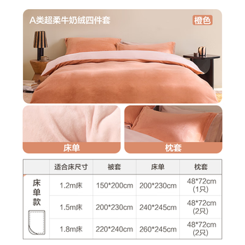 网易严选学生宿舍三件套床单款超柔牛奶绒单人冬季加厚保暖防静电 1.5x2m被套 橙色