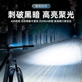 洛克兄弟(ROCKBROS)自行车灯前灯夜骑强光手电筒600流明山地公路车骑行装备 黑色
