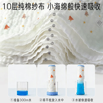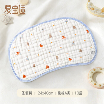 爱宝适婴儿云片枕宝宝枕头10层纯棉纱布枕巾新生儿平枕拍嗝巾圣诞树S203