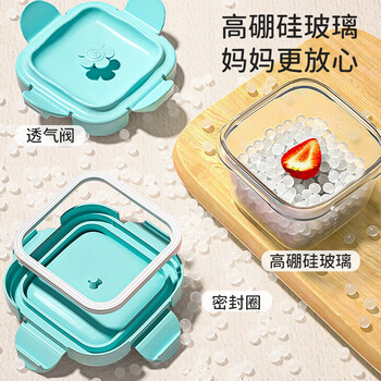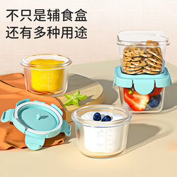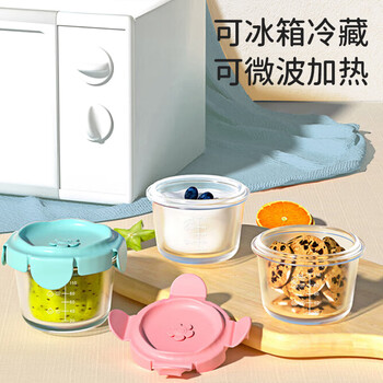 葆氏辅食盒玻璃婴儿储存保鲜盒可蒸煮分装盒冷冻密封蛋糕模具160ml*2