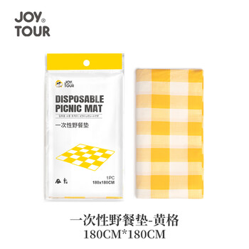 JOYTOUR一次性野餐垫 户外免洗懒人垫子沙滩垫烧烤防污桌布 黄格180*180
