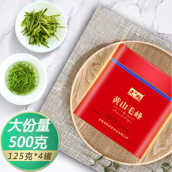 天旭茶叶绿茶明前黄山毛峰安徽新茶春茶礼盒装125g*4罐茗茶500克