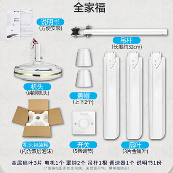 艾美特(AIRMATE)吊扇电风扇家用客厅1.4米56吋楼顶扇大风力吸顶电风扇工业工厂宿舍铜芯电机风扇 带调速器 FZ5613