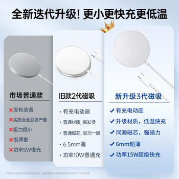 科沃 适用苹果17无线充电器Magsafe15W磁吸快充适用iPhone16/15/14ProMax/13/12plus11兼容小米手机
