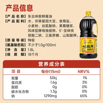 东古味极鲜酱油1.8L*1瓶