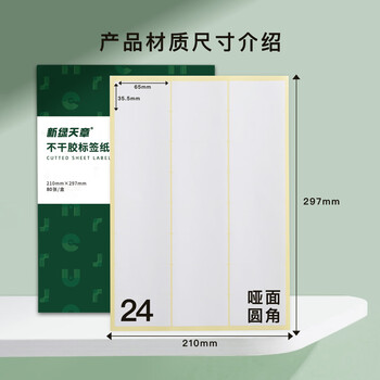 天章 (TANGO)A4不干胶打印纸亚面黄底 圆角24枚/张(65*35.5mm)80张/盒 自粘性标签贴纸 通用激光喷墨打印机