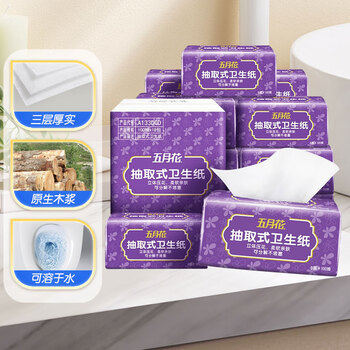 五月花(May Flower)卫生纸 3层100抽*18包 抽取式厕所用纸 易溶水可冲马桶 整箱售卖