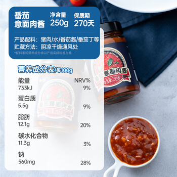 云山半番茄意面肉酱250g意大利面酱意粉通心粉拌面酱西餐调味番茄酱