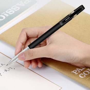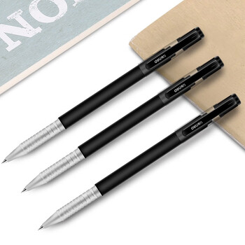 得力(deli)0.5mm黑色中性笔金属喷漆笔 子弹头签字笔 12支/盒
