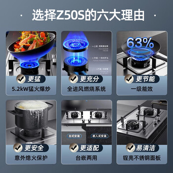 创维(Skyworth)燃气灶煤气灶双灶家用 5.2kW天然气嵌入式台式双灶具大火力不锈钢煤气炉 Z50S天