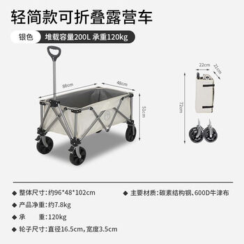 京东京造 聚拢型户外露营车折叠小推车营地车野餐摆摊双刹轻量可拆卸车轮