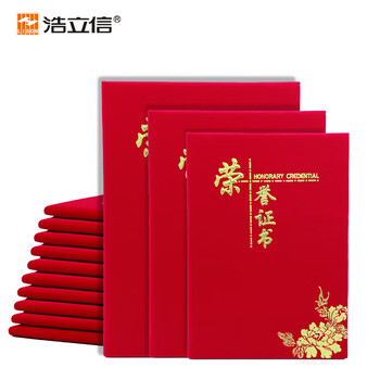 浩立信(LISON)10本装8K荣誉证书外壳配11张内芯绒面烫金颁奖奖状证书典礼表彰场合适用