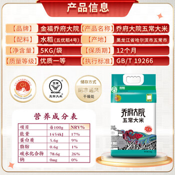 金福乔府大院 五常大米 10斤 淡香型 五优稻四号 当季新米