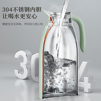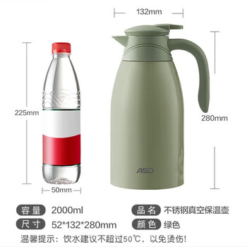 爱仕达304不锈钢真空保温壶 家用办公大容量热水瓶 长效保温 2.0L 绿色