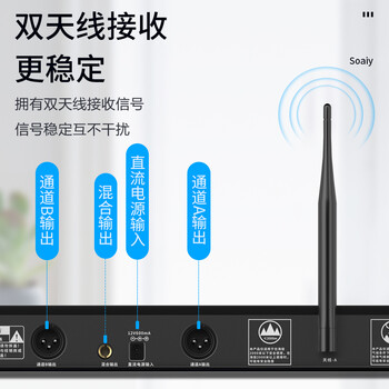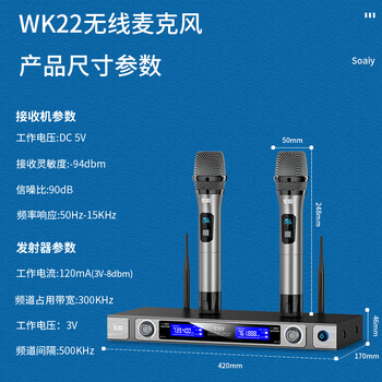 索爱(soaiy)SA-WK22 无线话筒 一拖二 U段可调频 无线麦克风专业K歌麦克风家庭KTV演唱会议主持专业话筒