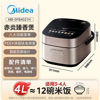 美的(Midea)赤炎臻香IH智能电饭煲Pro电饭锅家用4L钛金鼎釜WIFI智控蒸钛釜小米粥米饭锅MB-SFB4021H品牌官方