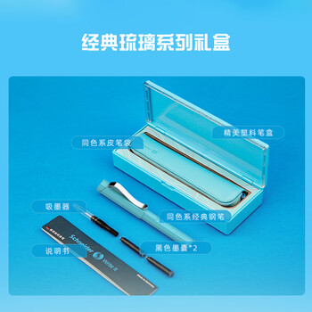钢笔× 1笔袋×1墨胆×2吸墨器×1塑料盒× 1