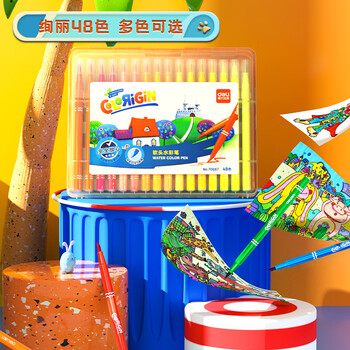 得力(deli)儿童48色可水洗软头水彩笔涂鸦绘画填色画笔开学生日礼物70687