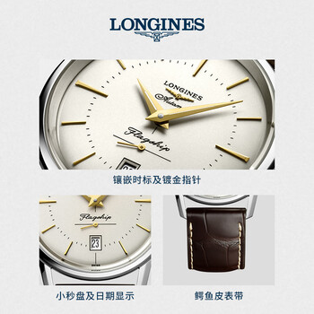 浪琴(LONGINES)瑞士手表 军旗复刻系列 男士皮带机械表L47954782