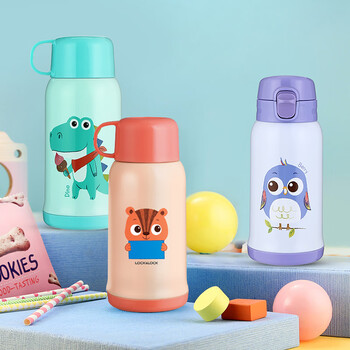 乐扣乐扣(LOCK&LOCK)儿童保温杯一杯三盖带杯套学生316不锈钢吸管杯宝宝水壶550ml松鼠