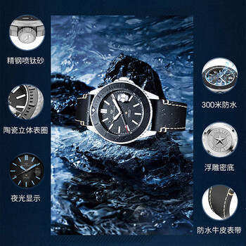 海鸥(SEAGULL)手表男士自动机械表 钛砂陶瓷男士手表 生日礼物男表潜水表1207