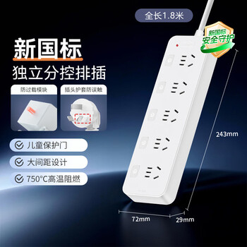 德力西(DELIXI) 3C认证国标分控带开关插座/插排/排插/插线板/接线板/拖线板 5位独立开关全长1.8米