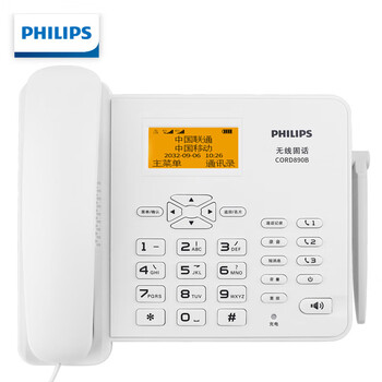 飞利浦(PHILIPS)(PHILIPS)无线插卡电话座机全网通4G可录音移动联通电信家用办公固话CORD890B 白色