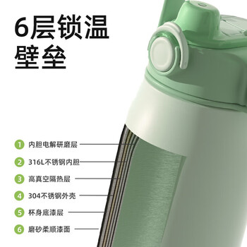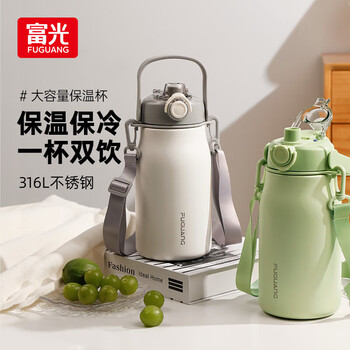 富光保温杯壶316L不锈钢超大容量水杯壶男女吸管杯户外运动杯子1300ml