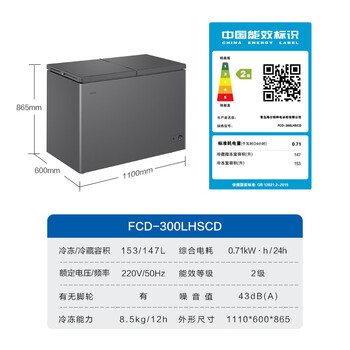 海尔(Haier)300升双箱双温家用商用冰柜 蝶门卧式冷藏柜冷冻柜冰柜家用小型冰箱冷柜FCD-300LHSCD