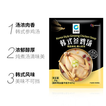 清净园参鸡汤1kg 韩式风味参鸡汤料包 加热即食滋补鸡汤 半成品菜速食
