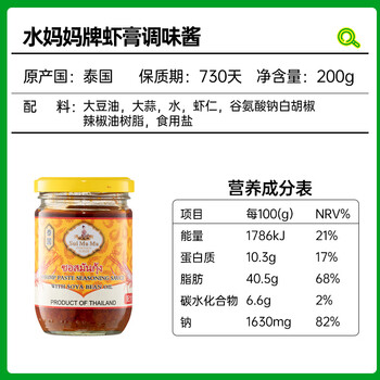 水妈妈 泰国进口 大虾膏虾酱调味酱200g 泰国料理佐料虾膏炒空心菜原料