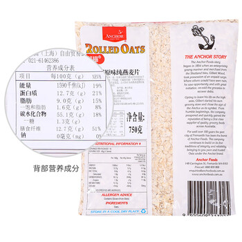 红锚 燕麦片 澳洲原装进口 原味早餐麦片 澳洲原产健康谷物 750g