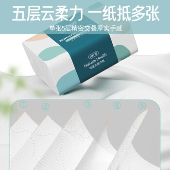 采琪采抽纸加厚5层300张*30包原木餐巾纸卫生纸巾面巾纸家庭整箱批发