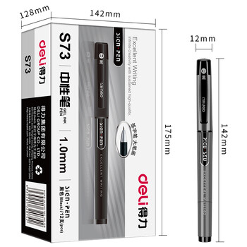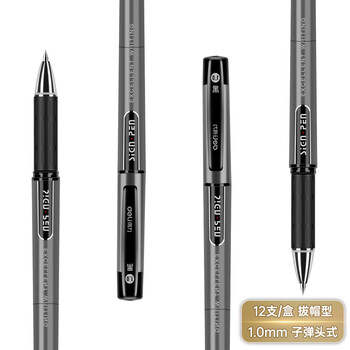 得力(deli)1.0mm办公拔帽中性笔碳素签字笔 办公用品 12支/盒S73黑色